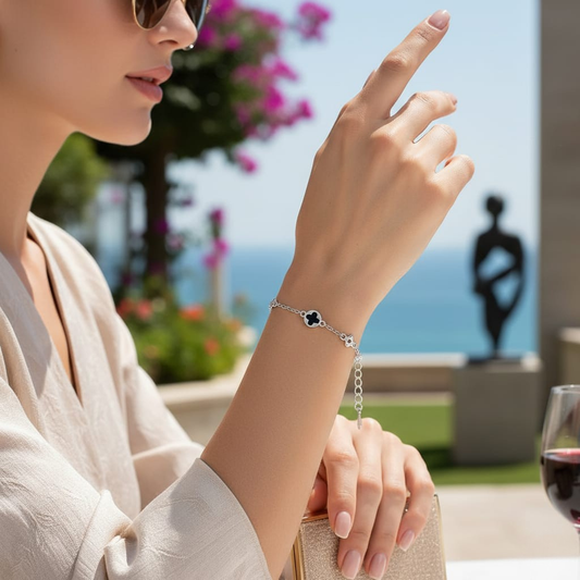 Lucky Five Clover Bracelet – Silver / Black 🍀