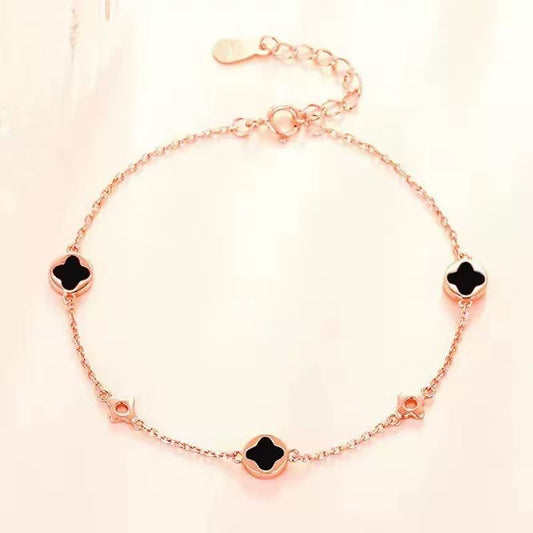Lucky Five Clover Bracelet – Rose Gold / Black 🍀